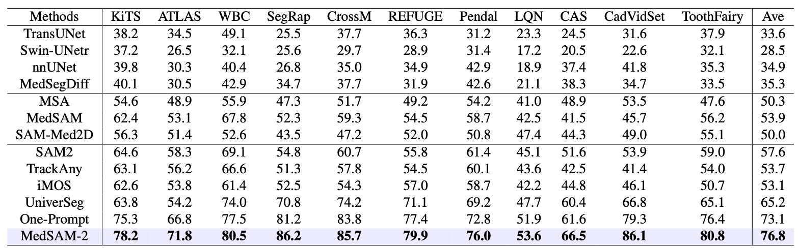 that MedSAM-2 surpasses a wide range of existing models and updates new SOTA on several benchmarks.