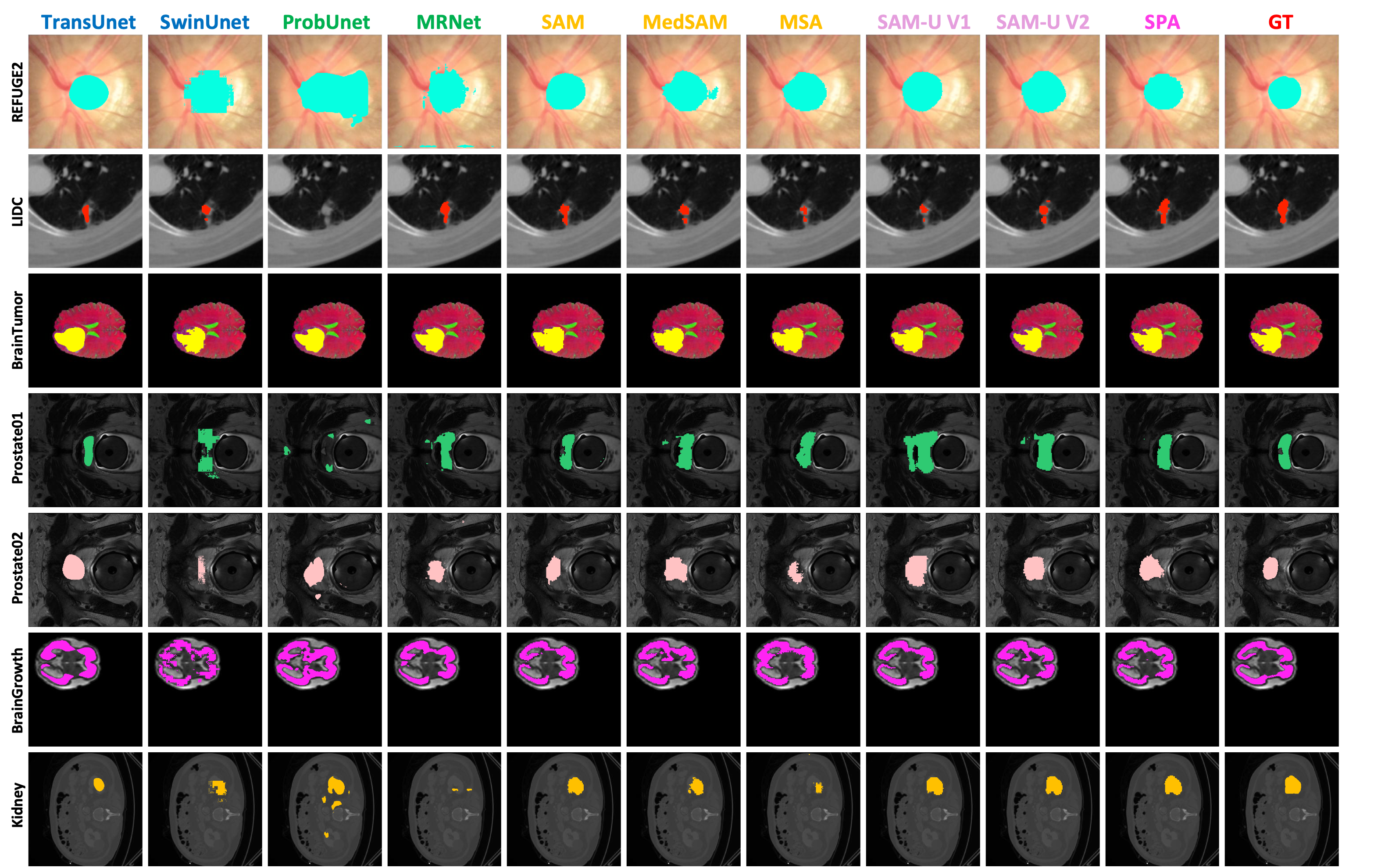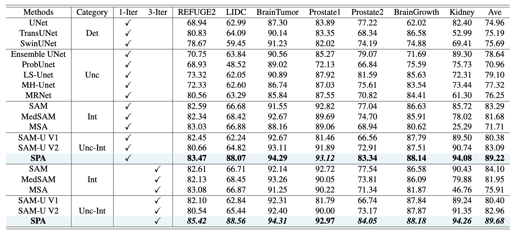 and interactive models. SAM-series models use clicks for interaction, while SAM-U